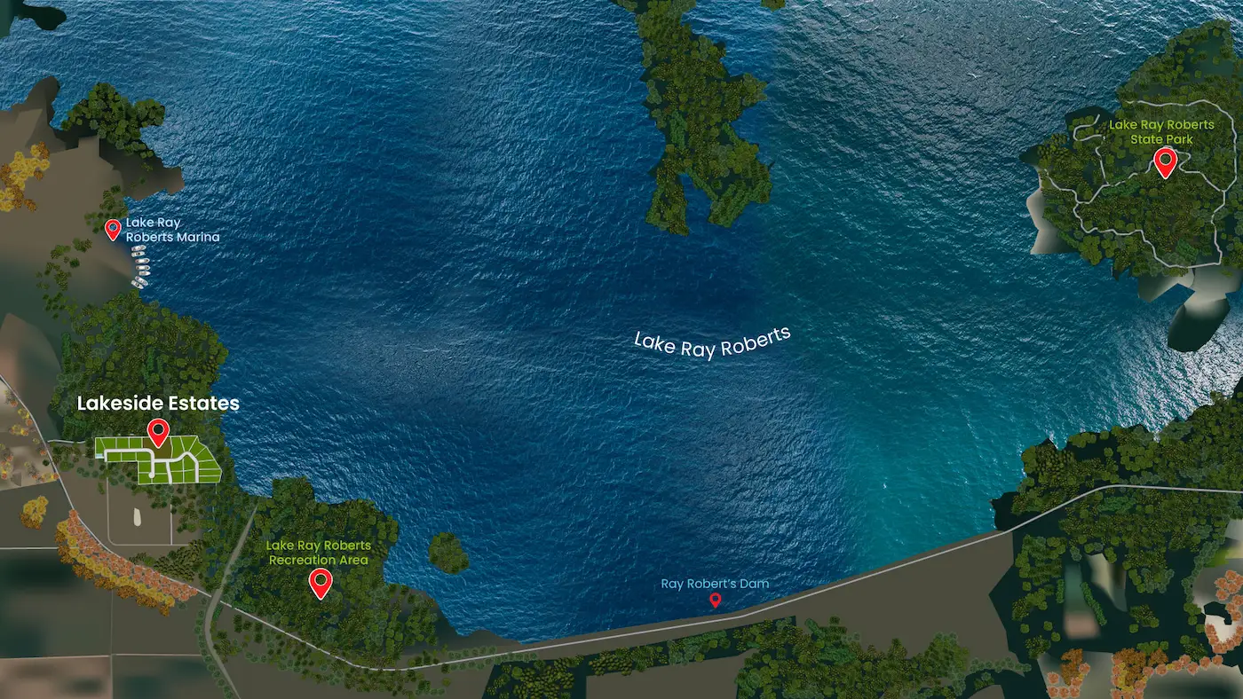 Situated on a scenic hilltop, each lot offers up to 180-degree views of the stunning Lake Ray Roberts, making every sunrise and sunset a lovely experience.